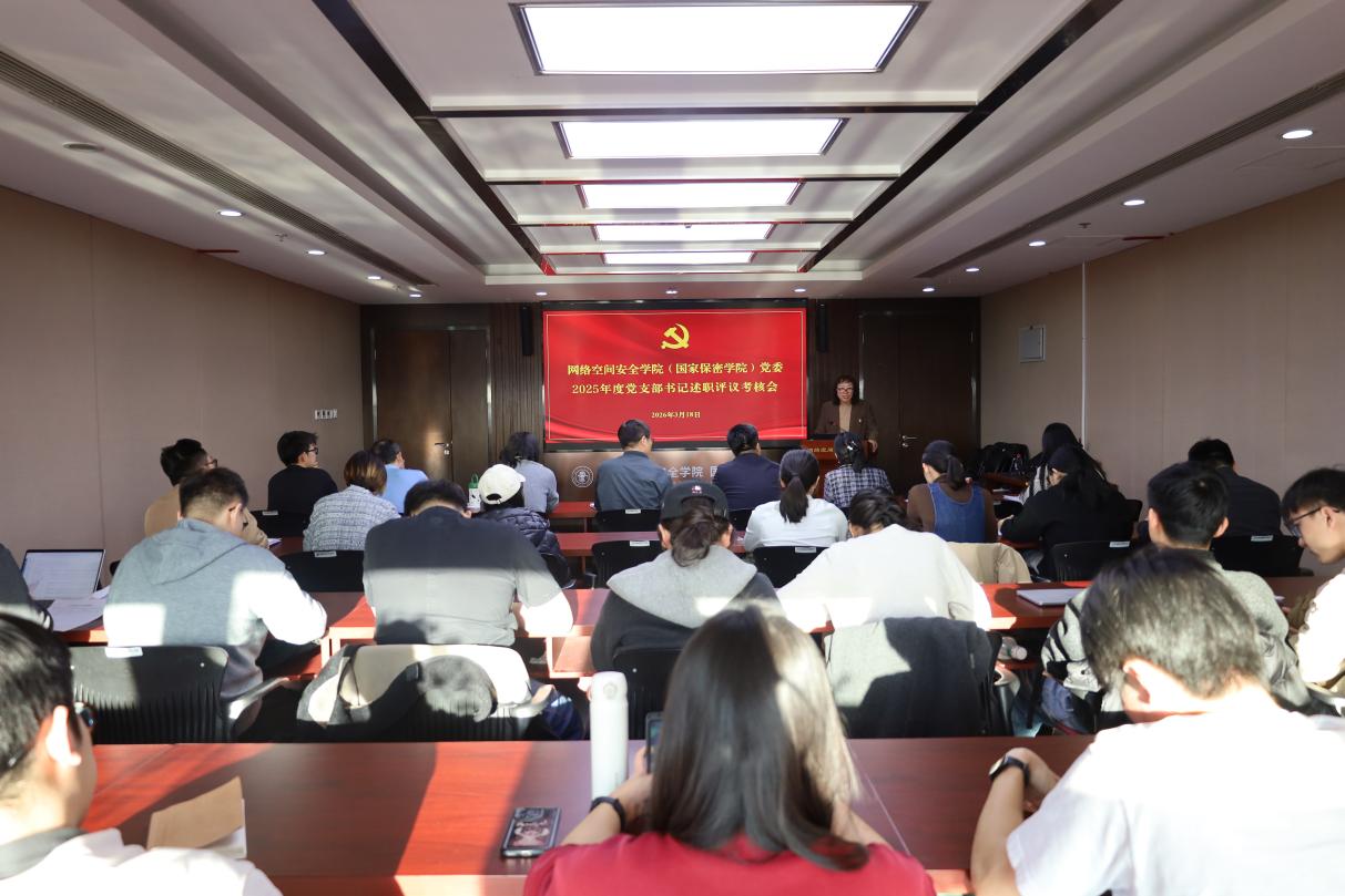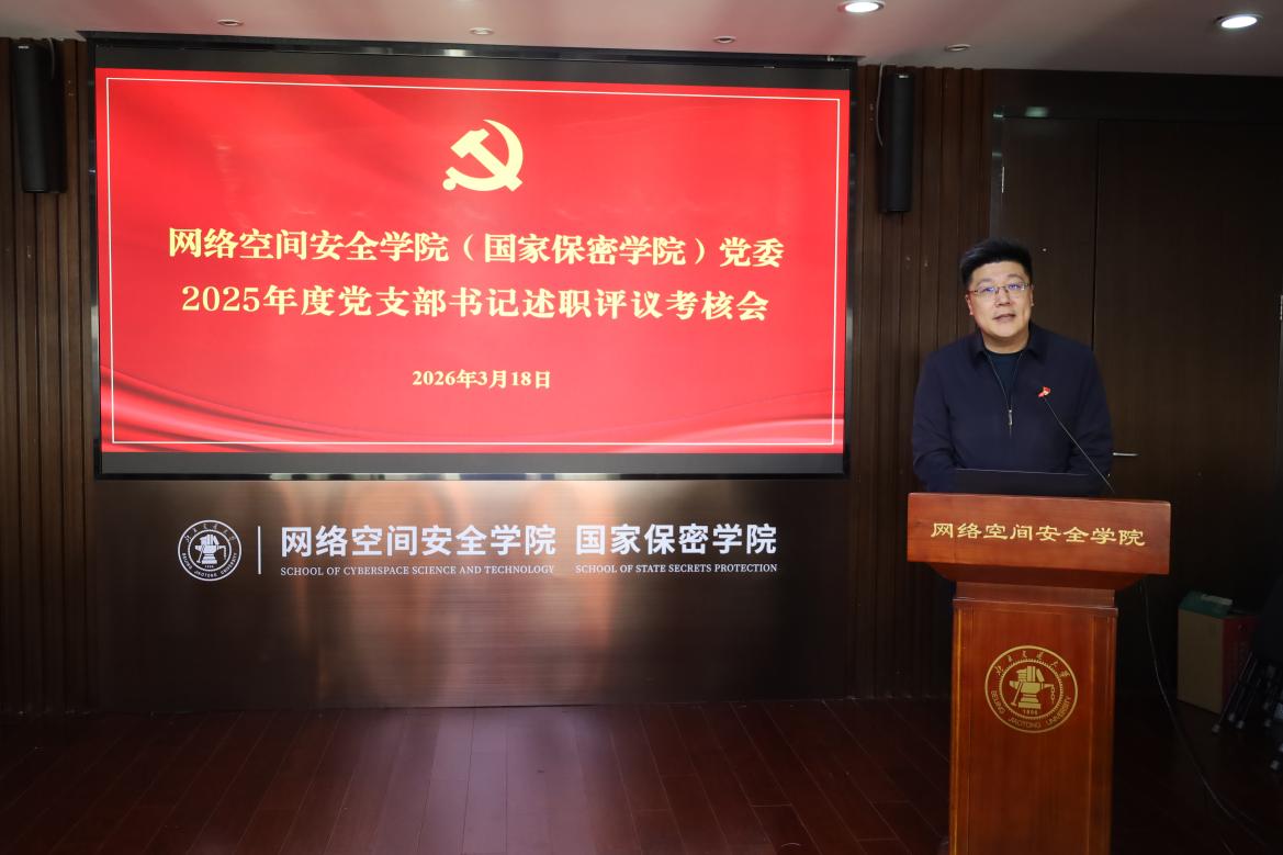 为贯彻落实公司党委关于基层党建工作部署要求和年度党建工作任务,全面压实党支部书记抓党建工作第一责任人职责,持续提升基层党组织政治功能和组织功能,3月18日下午,公司召开2025年度党支部书记抓基层党建工作述职评议考核会。公司党委书记杜晔、特邀党建组织员王雪庄、信息安全系主任黎琳、专职组织员、员工辅导员、党支部委员和师生党员代表等参会。会议由公司党委副书记、副经理安志强主持。
