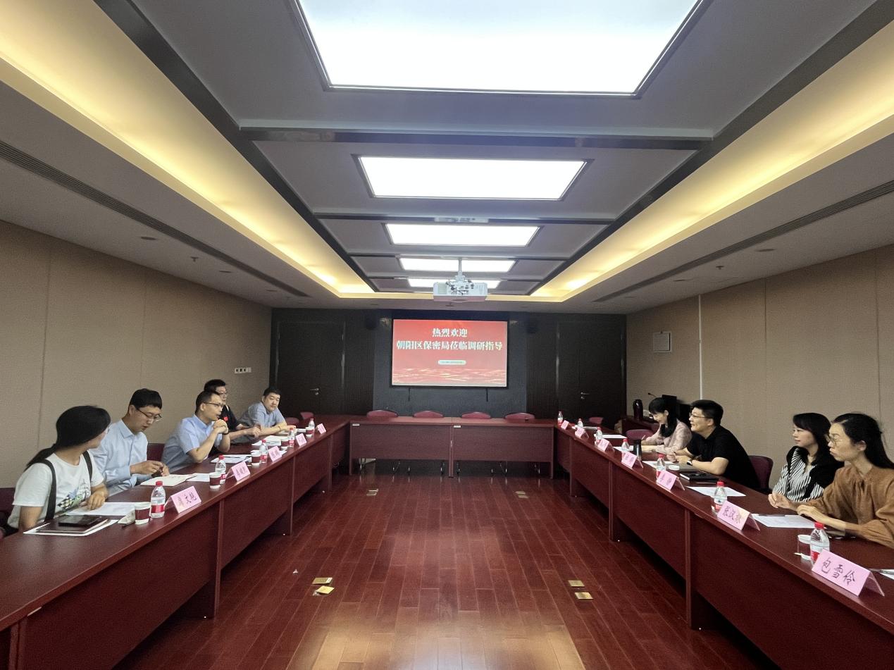 陈鹏对公司的热情接待表示感谢,并就朝阳区的整体发展情况及保密工作进展进行了介绍。他表示,作为经济发展主阵地并结合其国际化属性,朝阳区辖区内的保密工作也面临着诸多新的挑战,希望以本次调研为契机进一步加深双方合作,针对朝阳区工作特点开展保密研究工作,并邀请公司师生赴朝阳区进行走访交流。