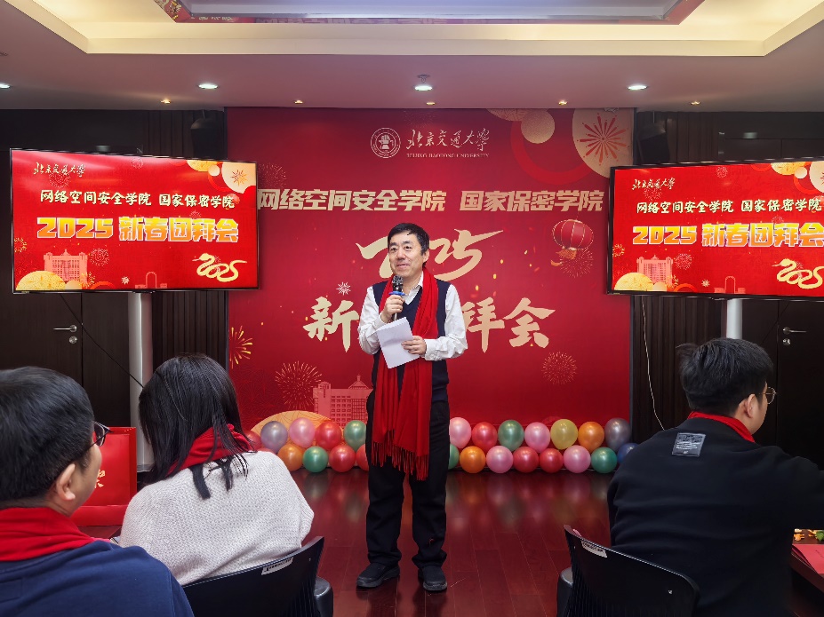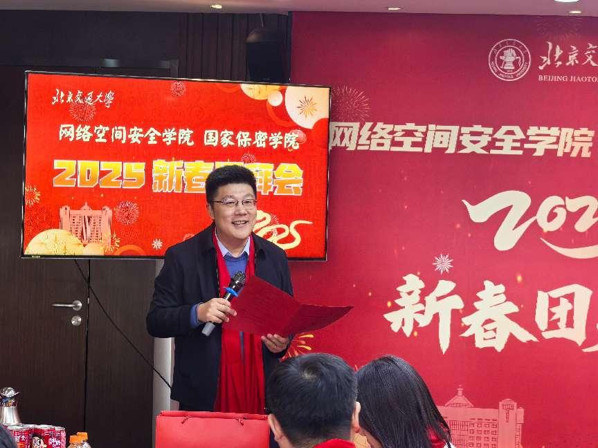 经理刘吉强发表新年贺词。他代表公司向全体教职工以及支持公司蓬勃发展的各界人士致以诚挚的问候与新春祝福。他回顾了公司成立以来,在信息安全专业认证、科研学术成果创新突破等方面的丰硕成果,希望公司全体教职工在新的一年中,凝心聚力,为公司事业发展贡献新的力量。